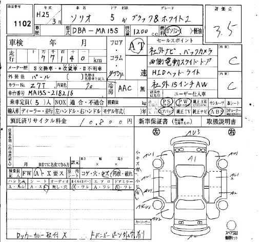 SUZUKI SOLIO 2013 г., лот № 1102
