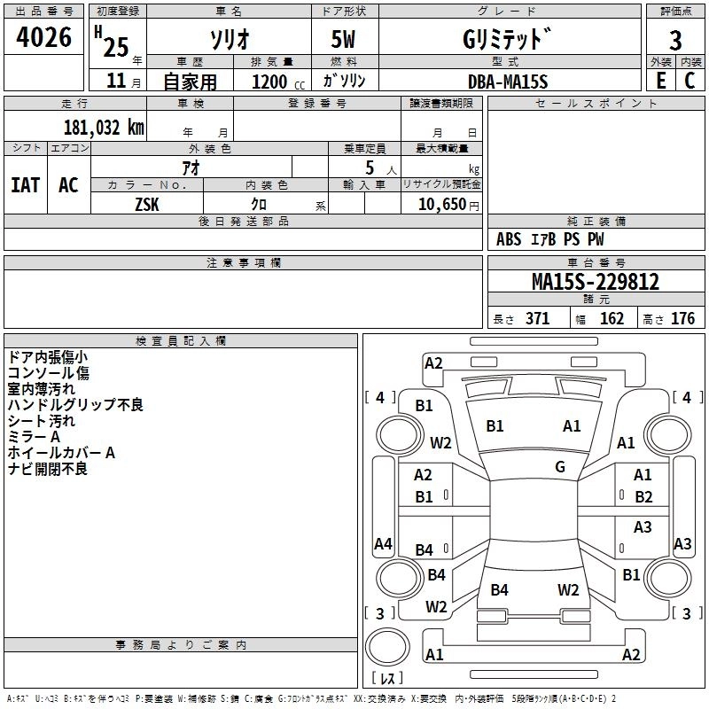 SUZUKI SOLIO 2013 г., лот № 4026