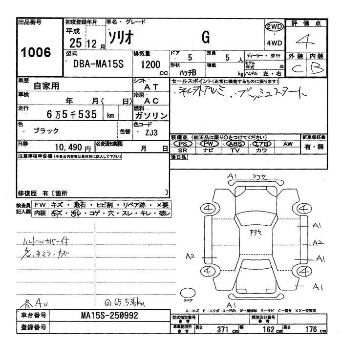 SUZUKI SOLIO 2013 г., лот № 1006