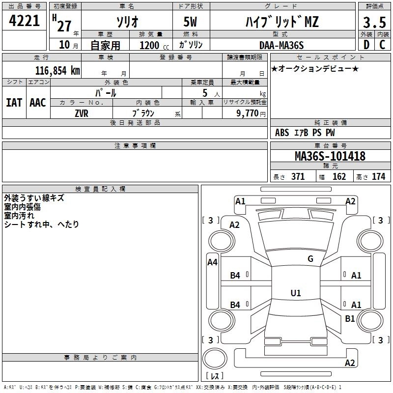 SUZUKI SOLIO 2015 г., лот № 4221