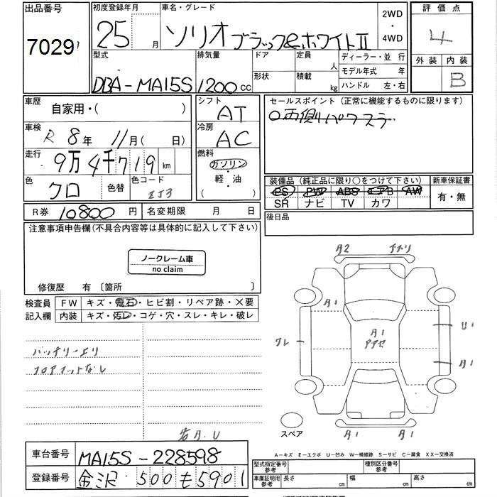 SUZUKI SOLIO 2013 г., лот № 7029