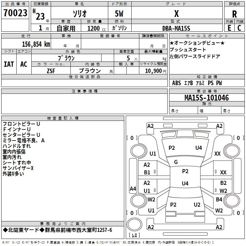 SUZUKI SOLIO 2011 г., лот № 70023