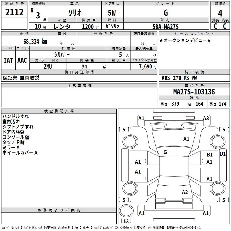 Статус выставлен на аукцион Лот 2112 Аукцион TAA Chubu Дата аукциона 12.03.2026