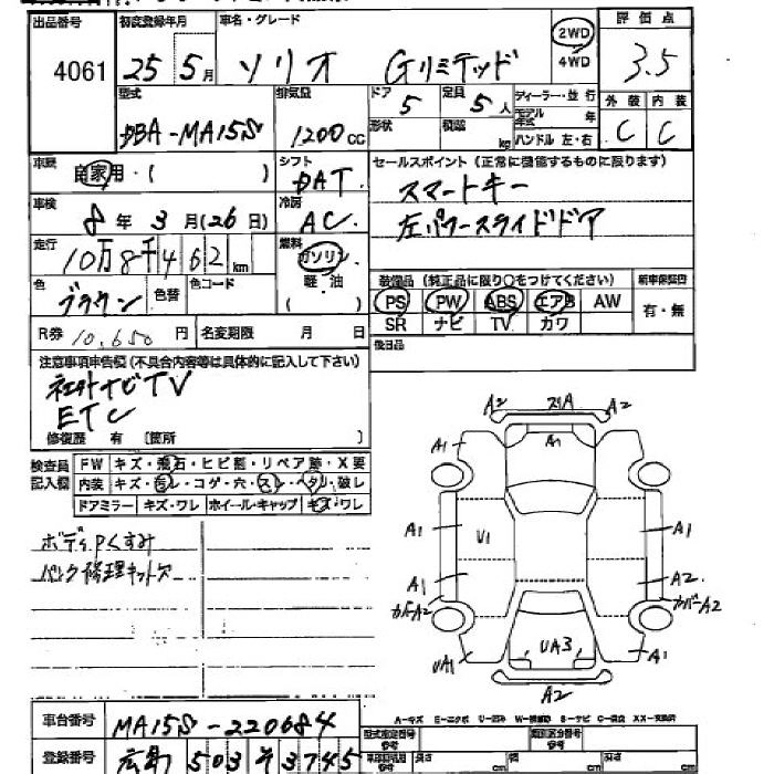 SUZUKI SOLIO 2013 г., лот № 4061