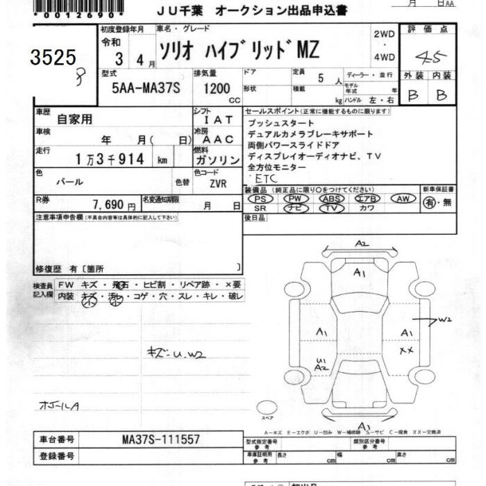 Статус выставлен на аукцион Лот 3525 Аукцион JU Chiba Дата аукциона 13.03.2026