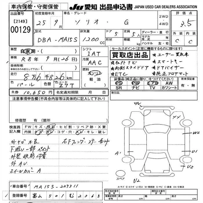Статус выставлен на аукцион Лот 129 Аукцион JU Aichi Дата аукциона 12.03.2026