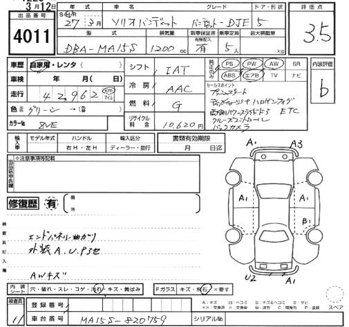 SUZUKI SOLIO 2015 г., лот № 4011