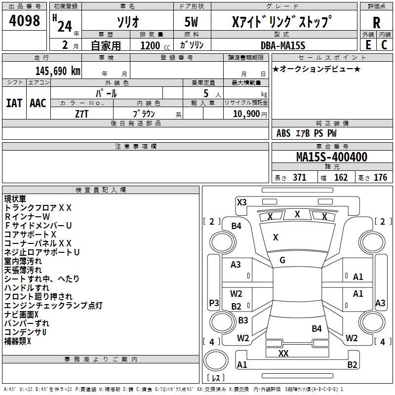 SUZUKI SOLIO 2012 г., лот № 4098