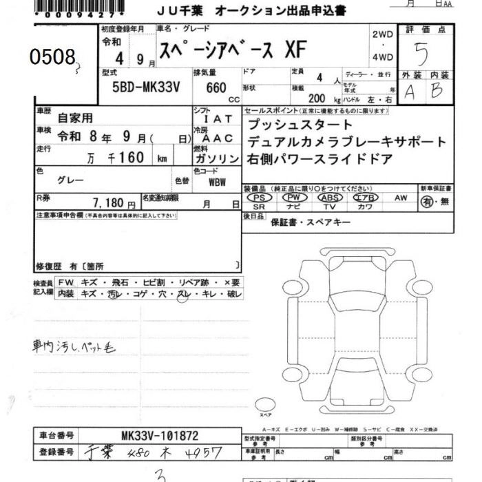 SUZUKI SPACIA BACE 2022 г., лот № 508