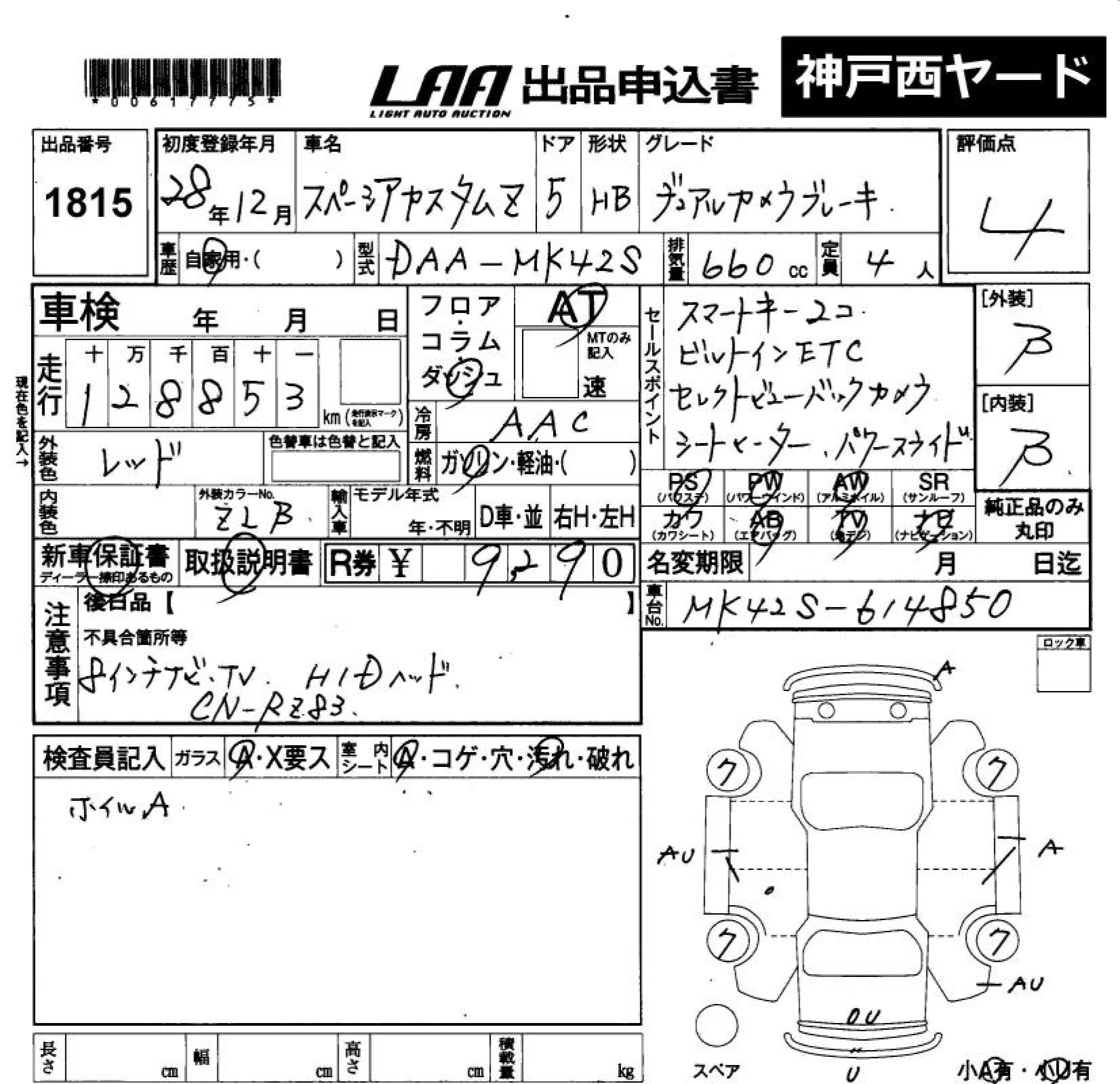 SUZUKI SPACIA CUSTOM 2016 г., лот № 1815