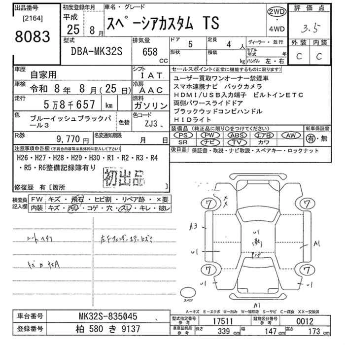 Статус продан Лот 8083 Аукцион JU Tokyo Дата аукциона 08.12.2025