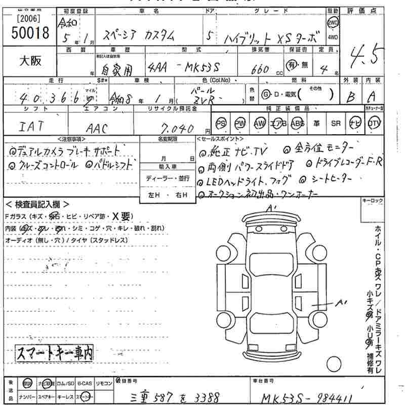 SUZUKI SPACIA CUSTOM 2023 г., лот № 50018