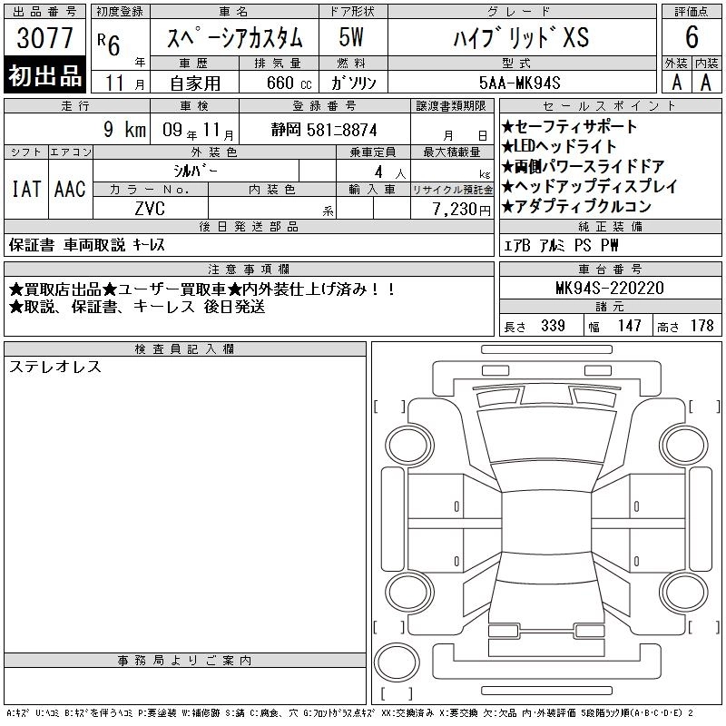 Статус выставлен на аукцион Лот 3077 Аукцион CAA Chubu Дата аукциона 10.12.2025