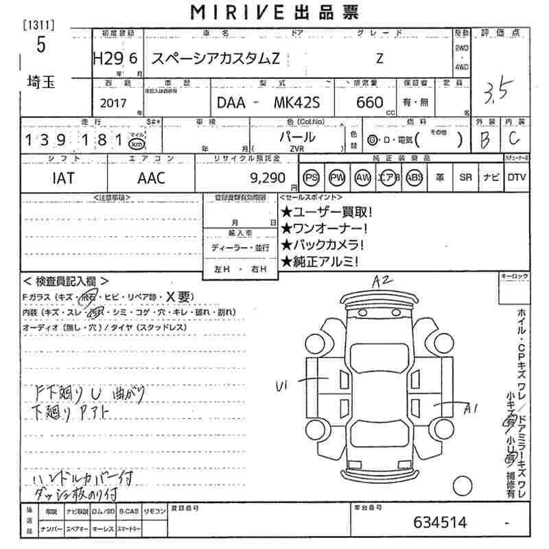 SUZUKI SPACIA CUSTOM 2017 г., лот № 5