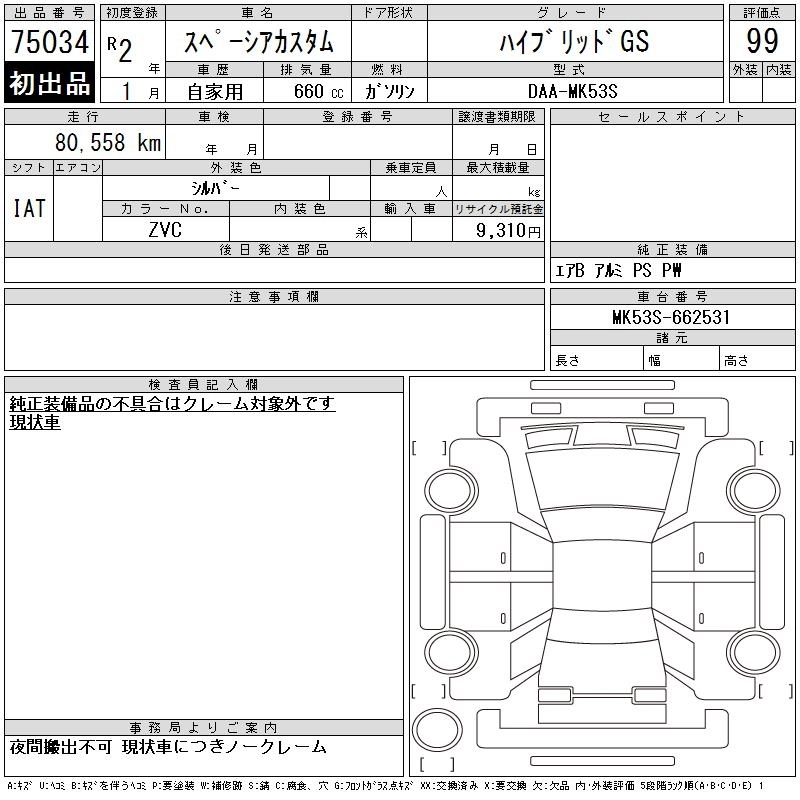 Статус выставлен на аукцион Лот 75034 Аукцион CAA Chubu Дата аукциона 28.01.2026