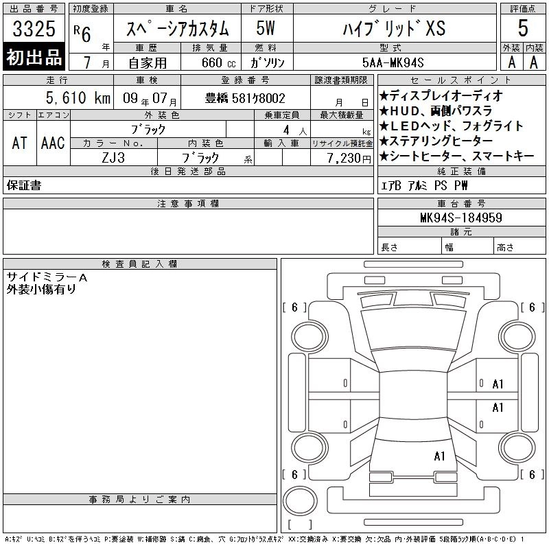 Статус выставлен на аукцион Лот 3325 Аукцион CAA Chubu Дата аукциона 11.03.2026