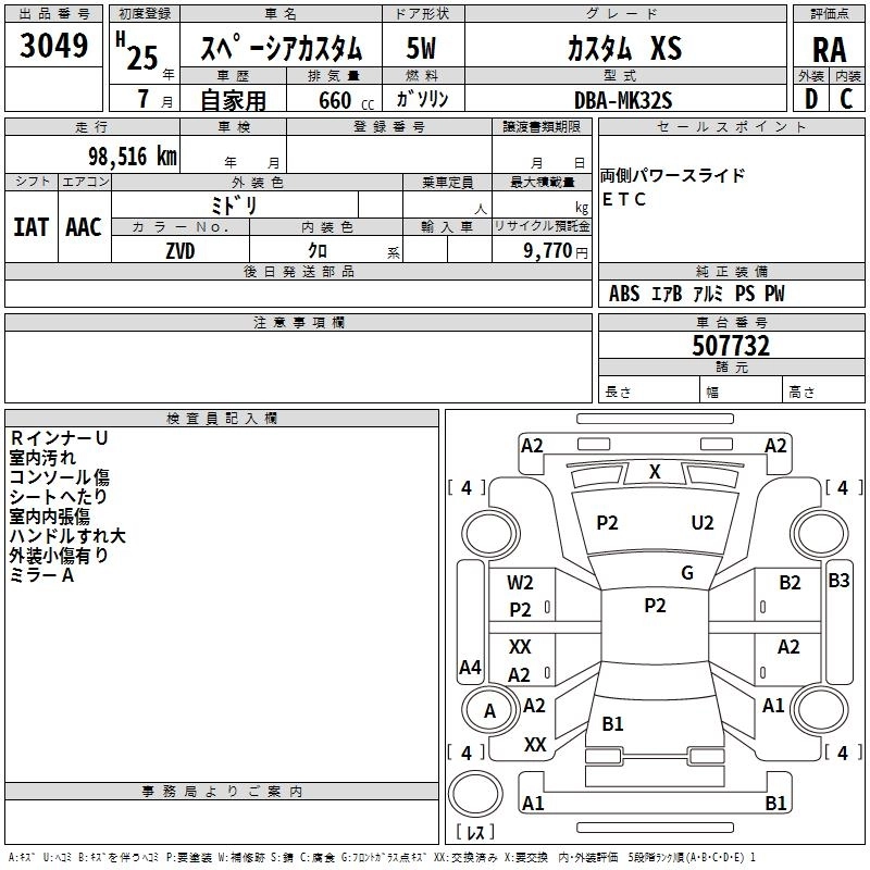 Год выпуска2013 Пробег 99 000 км КузовMK32S Комплектация CUSTOM XS
