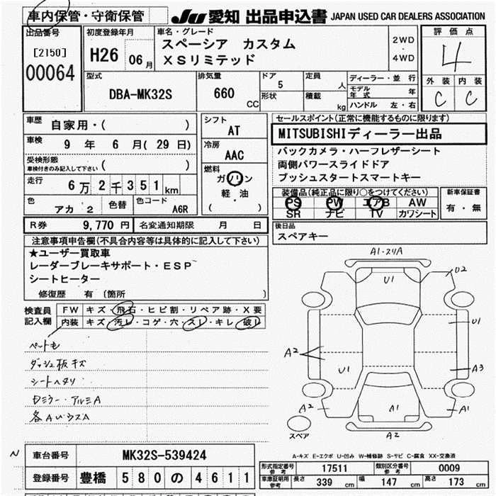 Статус выставлен на аукцион Лот 64 Аукцион JU Aichi Дата аукциона 19.03.2026
