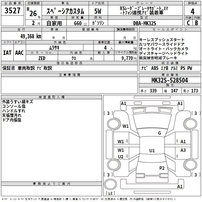 SUZUKI SPACIA CUSTOM 2014 г., лот № 3527