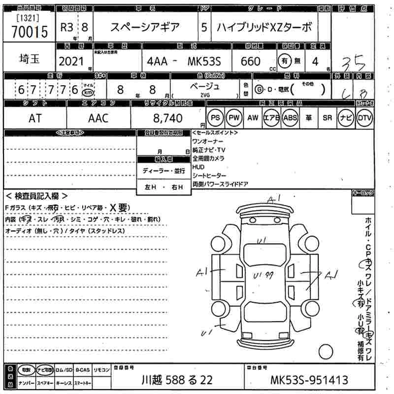 SUZUKI SPACIA GEAR 2021 г., лот № 70015