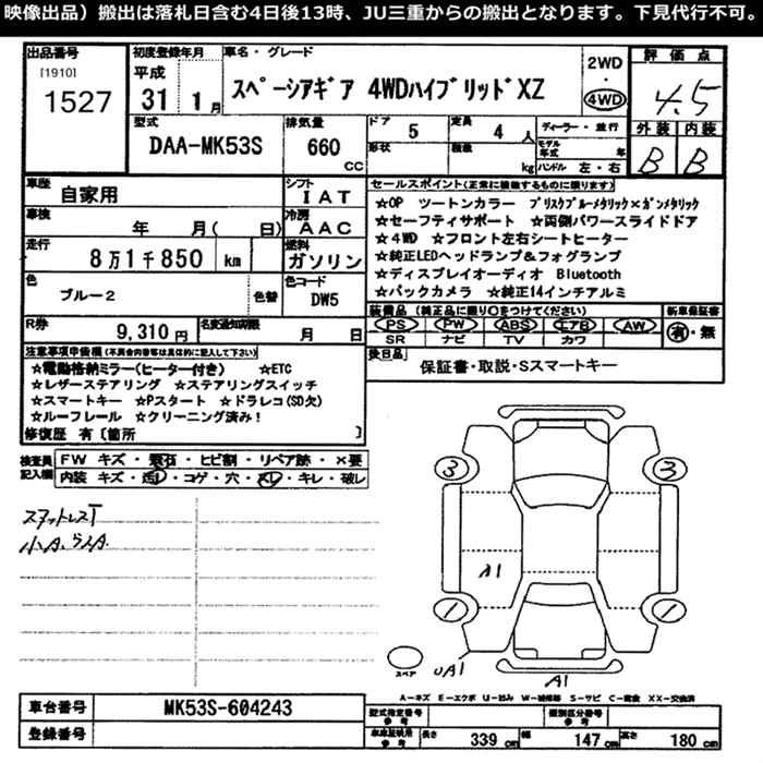 Год выпуска2019 Пробег 82 000 км КузовMK53S Комплектация4WD HYBRID XZ