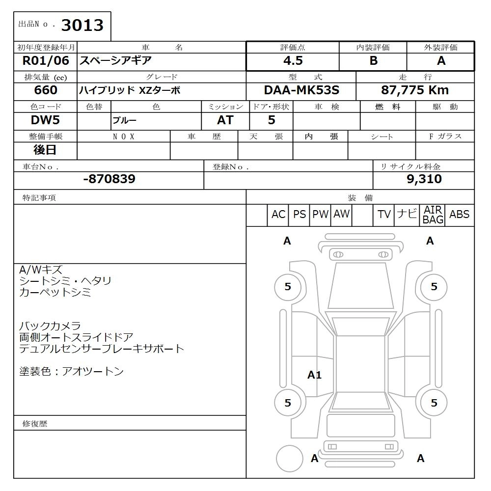 Статус продан Лот 3013 Аукцион Nissan Osaka Дата аукциона 09.03.2026