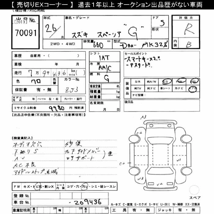 SUZUKI SPACIA 2014 г., лот № 70091