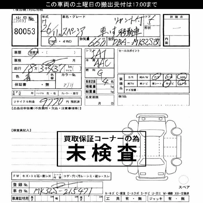 Год выпуска2014 Пробег 183 000 км КузовMK32S Комплектация WELL CAB REAR SEAT EXIST