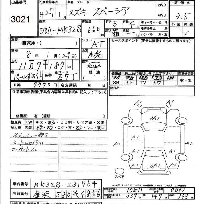 SUZUKI SPACIA 2015 г., лот № 3021
