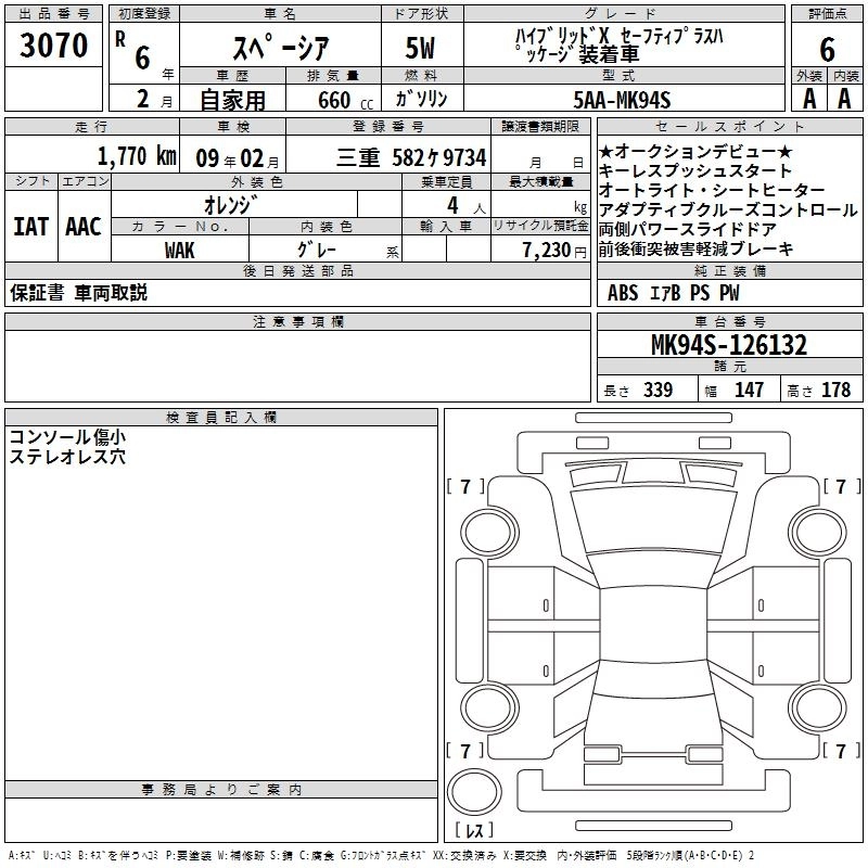 Статус выставлен на аукцион Лот 3070 Аукцион TAA Chubu Дата аукциона 11.12.2025