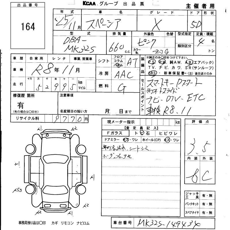 SUZUKI SPACIA 2013 г., лот № 164