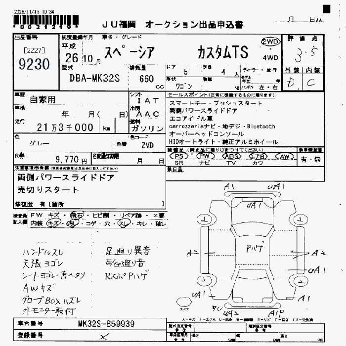 Статус выставлен на аукцион Лот 9230 Аукцион JU Fukuoka Дата аукциона 12.12.2025