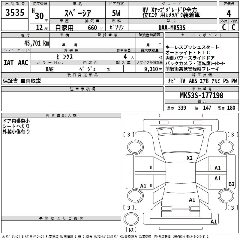 Год выпуска2018 Пробег 46 000 км КузовMK53S КомплектацияHVXUP GRAY PZEN MONITOR CAMERA P