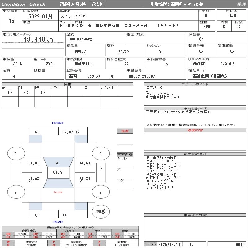 48 000 км КузовMK53S КомплектацияHYBRID G WHEELCHAIR MOVEMENT CAR SLOPER ATTACHING REAR SEAT ATTACHING