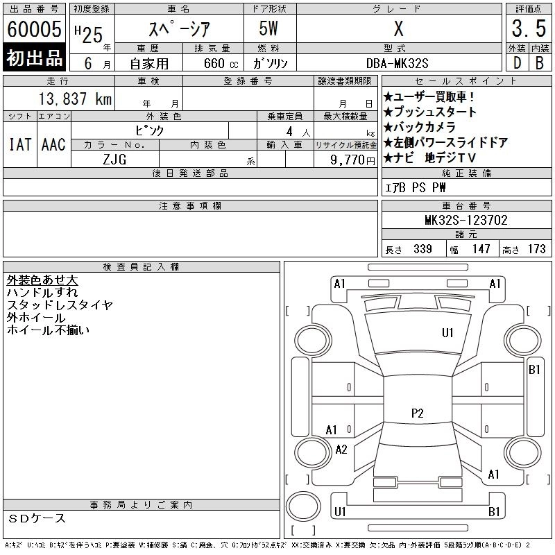 SUZUKI SPACIA 2013 г., лот № 60005