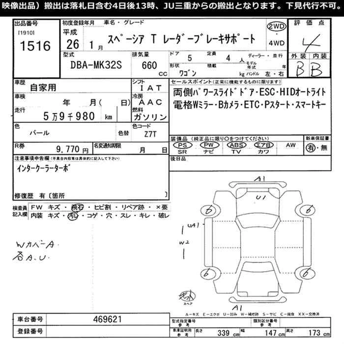 SUZUKI SPACIA 2014 г., лот № 1516