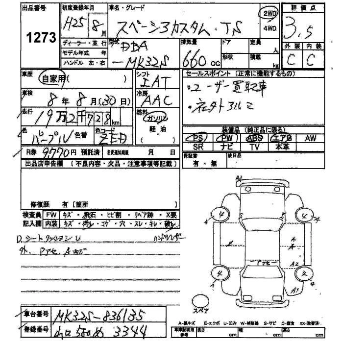 Год выпуска2013 Пробег 193 000 км КузовMK32S Комплектация CUSTOM TS
