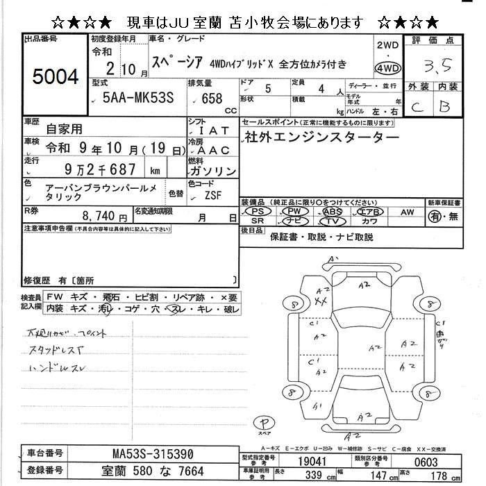 Год выпуска2020 Пробег 93 000 км КузовMK53S Комплектация4WD HYBRID X