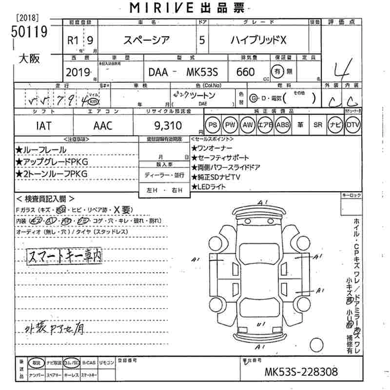 Год выпуска2019 Пробег 56 000 км КузовMK53S Комплектация HYBRID X