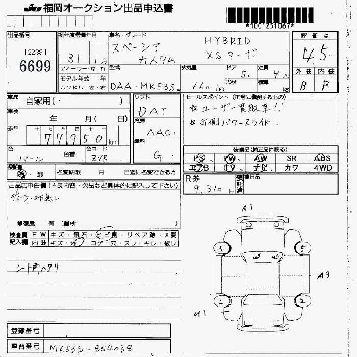 Статус выставлен на аукцион Лот 6699 Аукцион JU Fukuoka Дата аукциона 13.03.2026