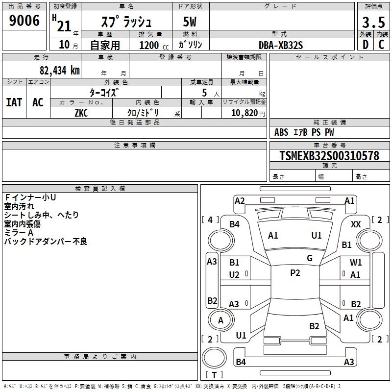 SUZUKI SPLASH 2009 г., лот № 9006