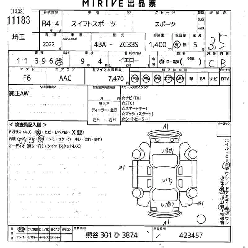 SUZUKI SWIFT SPORTS 2022 г., лот № 11183