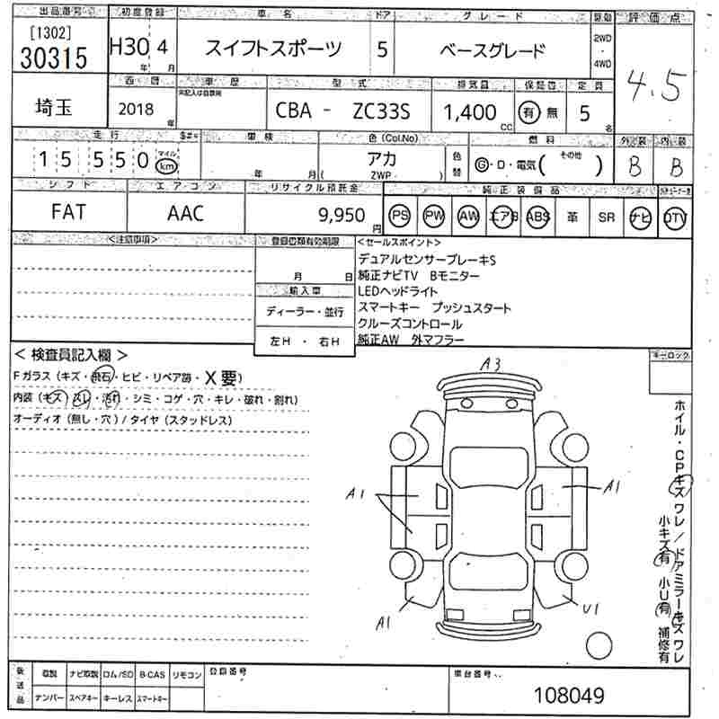 SUZUKI SWIFT SPORTS 2018 г., лот № 30315