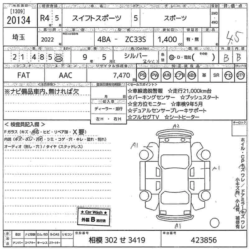 SUZUKI SWIFT SPORTS 2022 г., лот № 20134