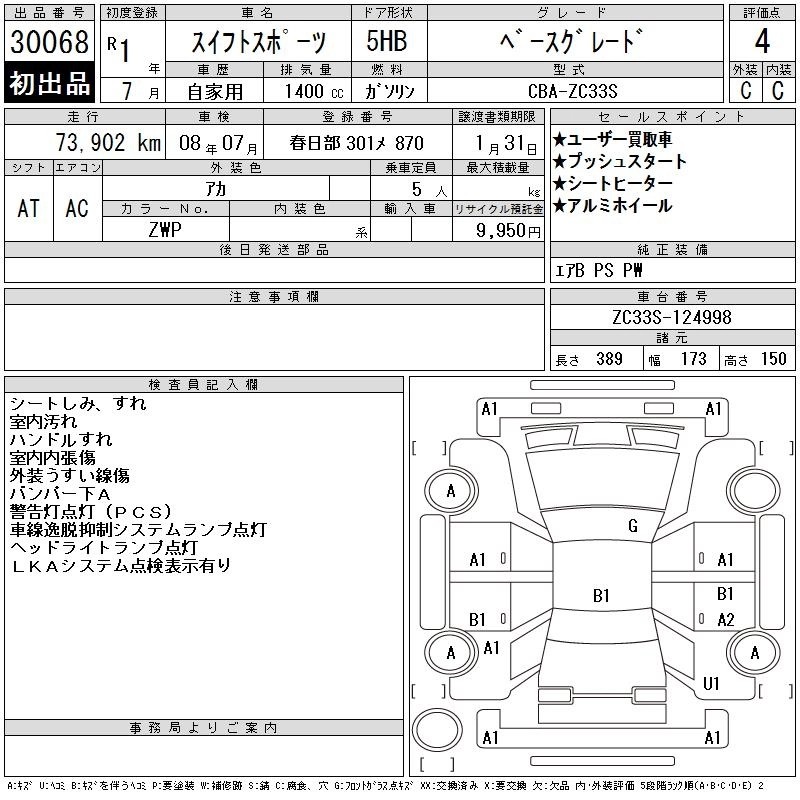 Год выпуска2019 Пробег 74 000 км КузовZC33S Комплектация BASE GRADE