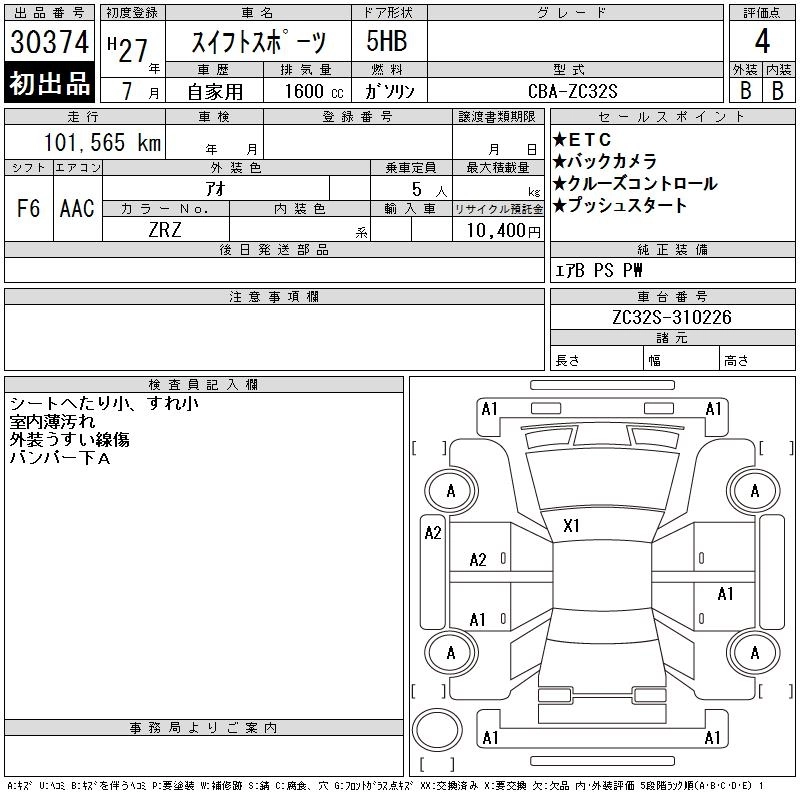 SUZUKI SWIFT SPORTS 2015 г., лот № 30374