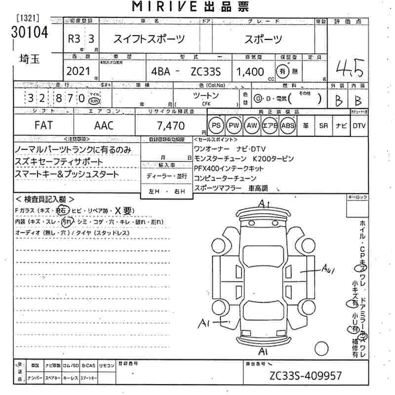 Год выпуска2021 Пробег 33 000 км КузовZC33S Комплектация SPORT