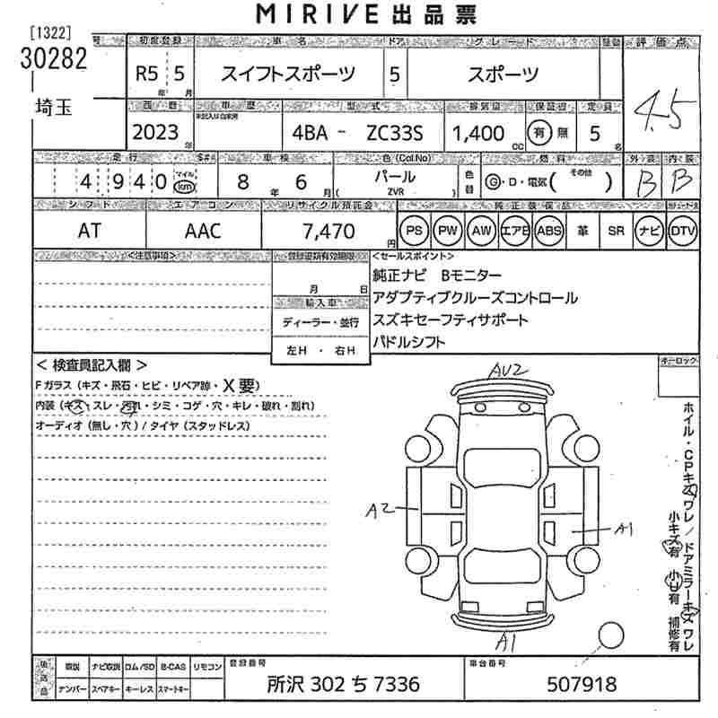 SUZUKI SWIFT SPORTS 2023 г., лот № 30282
