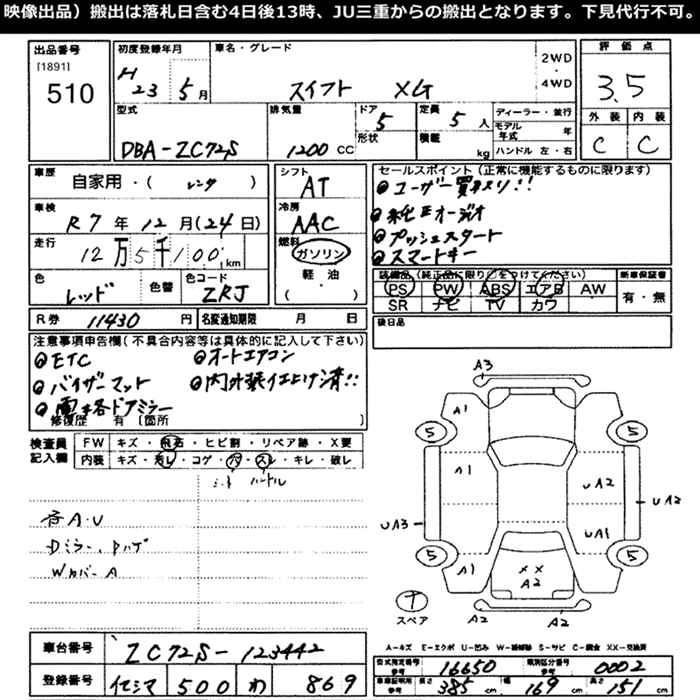 SUZUKI SWIFT 2011 г., лот № 510