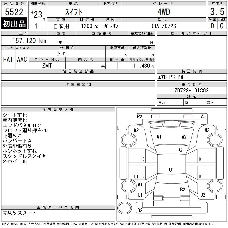 SUZUKI SWIFT 2011 г., лот № 5522